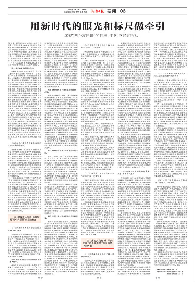 第三篇《用新时代的眼光和标尺做牵引——实现“两个高质量”的目标、任务、路径和方法》于今日在河南日报头版转六版刊出。