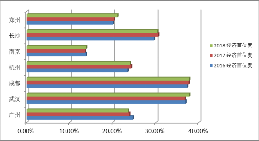 图5 2016年~2018年万亿俱乐部省会城市经济首位度对比